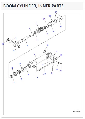 Repair kit for the boom cylinder of KOMATSU excavators.