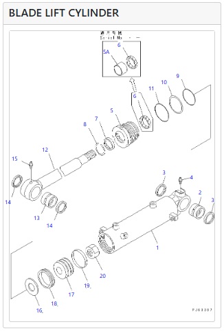 Комплект уплътнители за ремонт на цилиндъра за повдигане на греблото (blade lift) на ескаватори KOMATSU