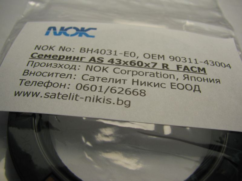 Семеринг TC (AS) 43x60x7 R fluoro-ACM NOK/Japan, за колянов вал на Lexus ,Toyota 90311-43004,BH4031-E0