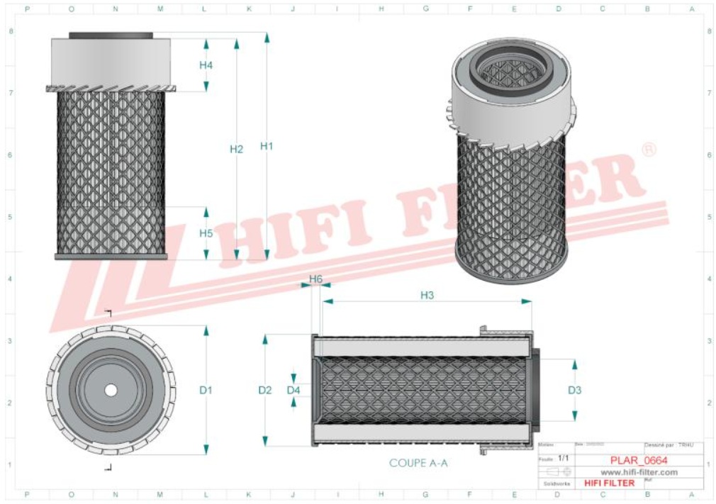 Air filter SA 14100 HIFI FILTER for ATLAS,CATERPILLAR,FURUKAWA,GROVE, JOHN DEERE,KOBELKO,LANDINI,LIEBHERR,MASSEY FERGUSON,NEW HOLLAND,O&K,RICHIER